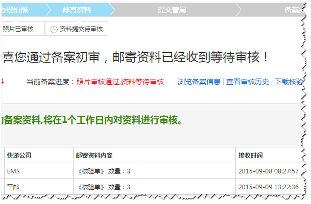 提交域名备案申请后,我是非常兴奋的。2小时内,我接到电话告知初审合格,然后幕布照不合格。其实用原来的照片本是可以的,但对服装与季节的协调有要求,就用前面申请到的阿里云幕布自行拍照,也算是通过了。然后就通知我邮寄资料,其实也没有什么东西,3分网站信息核验表!